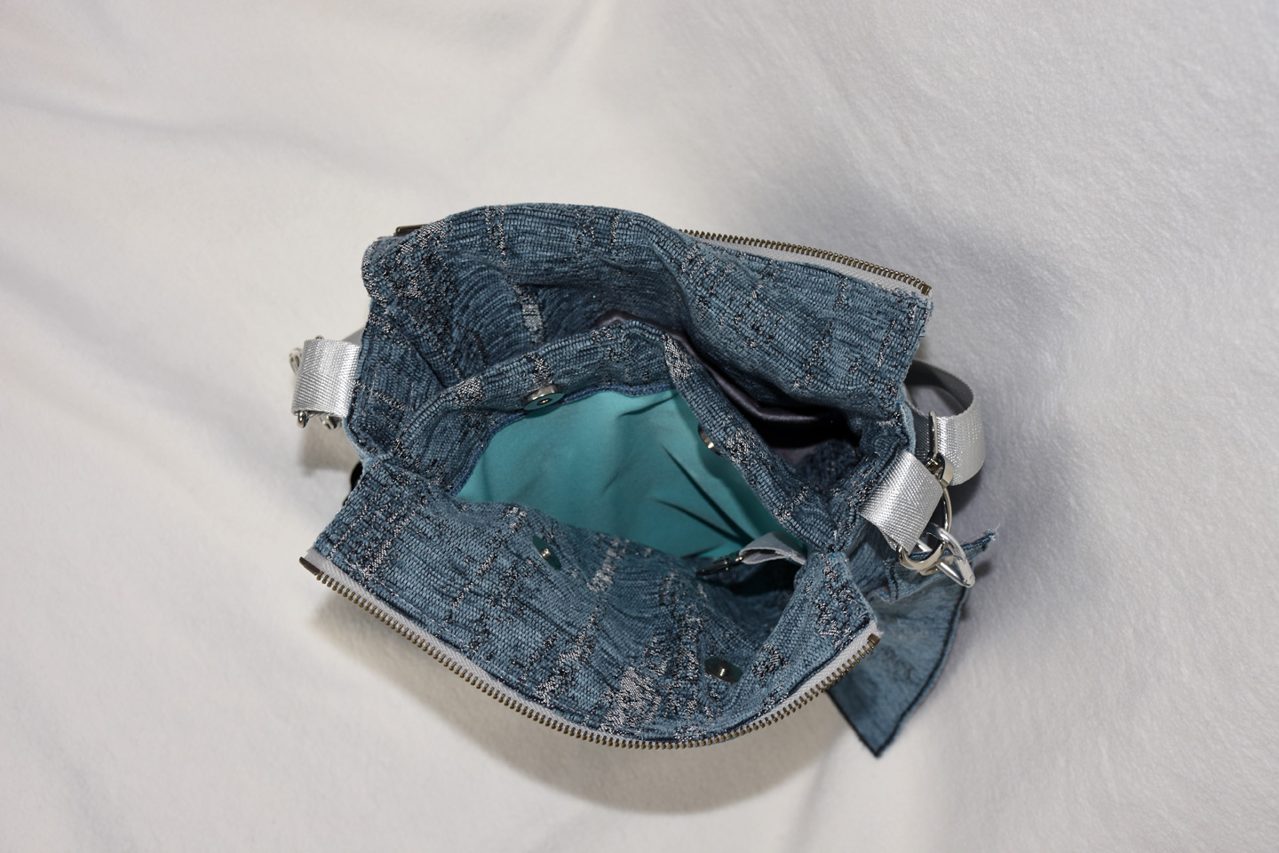 Sonstiges: Magnetverschlüsse, Karabiner und YKK-Reißverschluss (Metall), verstellbarer Tragegurt